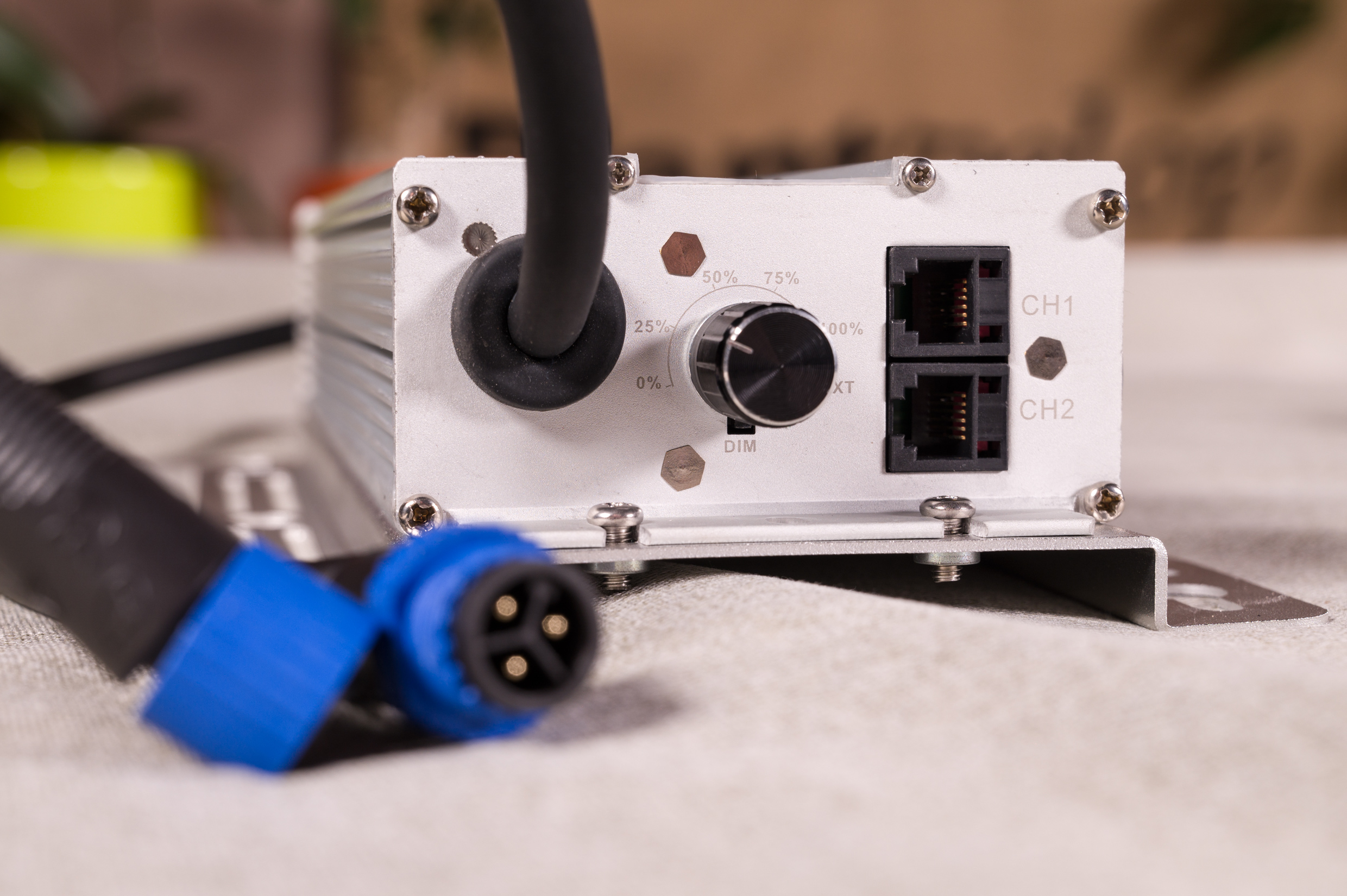 Das Netzteil von SOSEN lässt sich mit vier Rändelschrauben von der LED Pflanzenlampe abnehmen und außerhalb des Anbauzeltes platzieren, was für mehr Flexibilität bei der Installation sorgt.