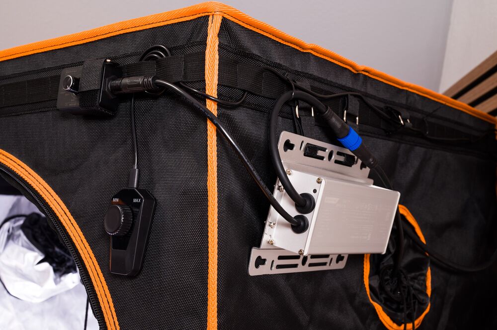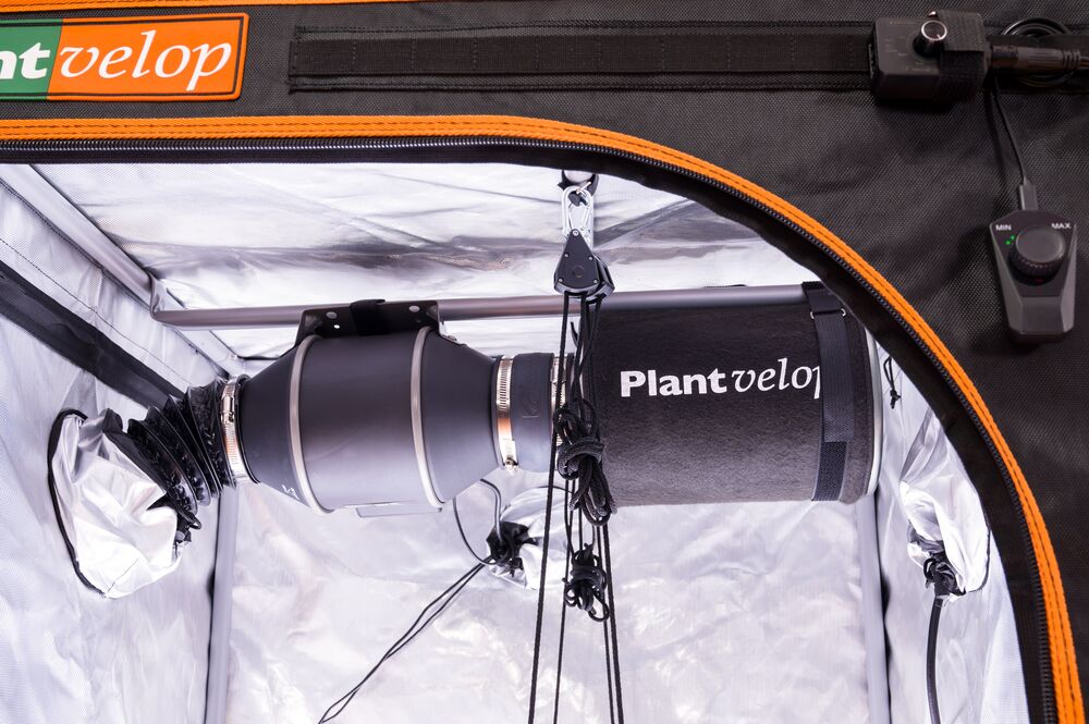Die Basis bildet das kompakte Anbauzelt GT816 (80 × 80 × 160 cm) – ein Premium-Zelt für den langjährigen Einsatz. Es überzeugt durch Robustheit, hochwertige Materialien und ein durchdachtes Befestigungssystem, für Ordnung und Struktur. Ergänzt wird das System durch verlässliche Klimakomponenten: bestehend aus Rohrventilator mit Aktivkohlefilter, sowie einem oszillierenden Klemmventilator, der sanften Wind simuliert. Alle Klimakomponenten sind so entwickelt, dass sie direkt manuell oder bei Bedarf extern über USB-C angesteuert werden können. Plantvelop Steuerung GC800 – plug & play ready, optional erhältlich.