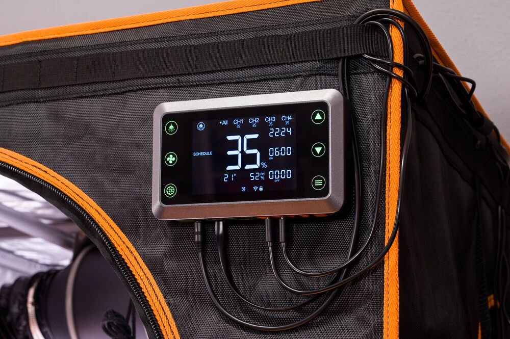 Zentrale Steuerungseinheit zur Regelung von LED-Beleuchtung und Klimakomponenten im Indoor-Anbau. Mehrere Geräte können gleichzeitig angeschlossen und manuell oder sensorgesteuert betrieben werden. Intuitive Bedienung, flexible Montage und umfangreiche Zeit- sowie Automationsfunktionen ermöglichen eine präzise Kontrolle der Anbauumgebung ohne zusätzliche Stromversorgung.